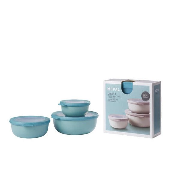 Das Schüssel-Set in Nordic Green von Mepal besteht aus drei flachen Schüsseln mit 350 ml, 750 ml und 1250 ml Fassungsvermögen.