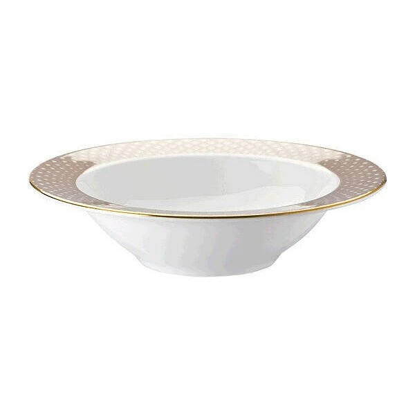 Die Dessertschale aus der Geschirrkollektion Francis Carreau Beige von Rosenthal verhilft zu einem formschönen Genussmoment während des Schlemmens von Eis oder Mousse au Chocolat. Die weißen Rauten, die sich auf dem Tellerrand auf ein entspannendes Beige betten, verleihen dem Dekor der Schale einen ausdrucksstarken Charakter. Mit der filigranen Goldkontur wird das Gesamtbild harmonisch abgerundet.