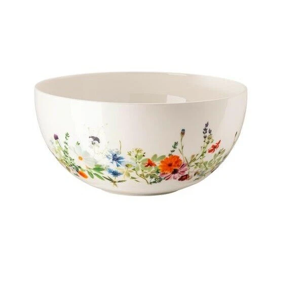 Die Schüssel der Serie Brillance Bone China Grand Air von Rosenthal überzeugt durch das bunte Dekor aus duftenden Wildblumen und filigranen Kräuter, die sich mit Leichtigkeit über das feine Bone China ziehen. So servieren Sie Ihre Beilagen und Salate in einer harmonischen Einheit aus farbiger Vielfalt und schimmernder Eleganz.