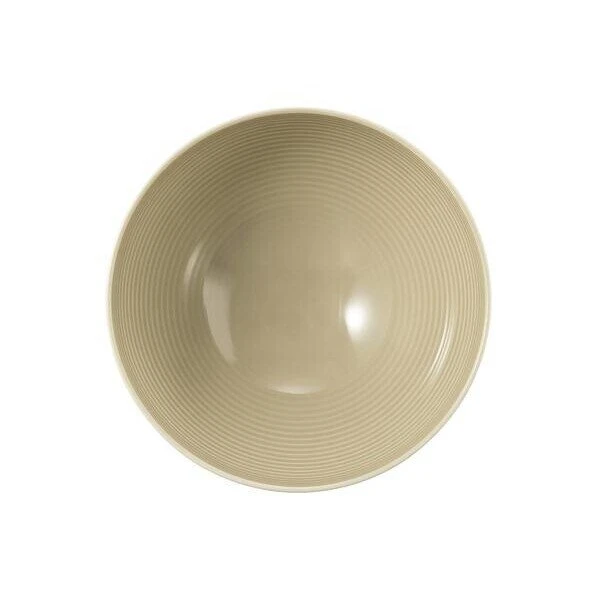 Mit dieser Schüssel Beat Color Glaze Sandbeige von Seltmann Weiden lassen sich Ihr Portionssalat und Ihr Müsli mit einer sanften und erdenden Wirkung servieren. Der dezente Farbton der Schüssel wird auf der Innenseite um ein filigranes Rillenrelief erweitert, das an Schallplatten erinnert. Im Kontrast dazu steht die glatte, ruhige Außenseite, die die Haltung in der Hand besonders angenehm macht.
