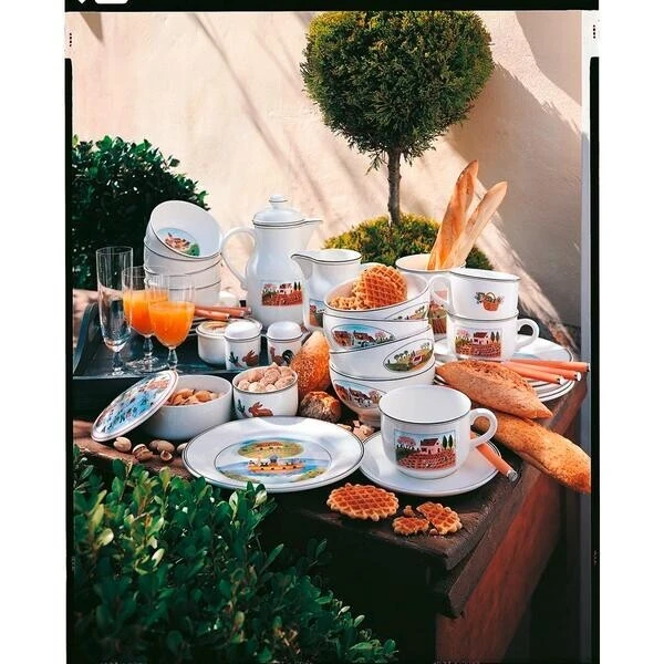 Naiv (frz. naïf) bedeutet im besten Wortsinn unschuldig, kindlich oder unvoreingenommen – mit dieser Geste präsentiert sich Design Naif von Villeroy & Boch. Die Dekore sind auf kindliche Weise unschuldig, indem sie, Perspektive und jegliche Bedenken gegenüber grellen Farben vergessend, mit schlichten Mitteln die reine Freude am Malen ausdrücken. In den verschnörkelten, aber robusten Formen setzt sich diese Verspieltheit fort. Design Naif ist aus relativ dickwandigem Premium Porcelain gefertigt, was dieser Serie nicht nur herausragende Gebrauchseigenschaften verleiht, sondern auch ihre bodenständige Attitüde unterstreicht. Alle Stücke sind spülmaschinenfest.