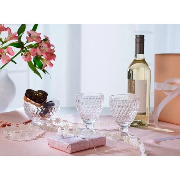 Mit einem edlen Facettenmuster besticht die Schale der Serie Boston von Villeroy & Boch bei dem stilvollen Anrichten von Snacks oder Desserts.
