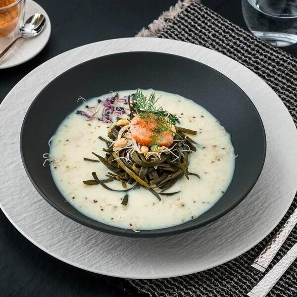 Selbst gemachte Köstlichkeiten: Die vielseitig einsetzbare Schale im kräftigem Schwarzton eignet sich hervorragend für eine Suppe, hausgemachte Pasta oder süße Dessert-Variationen.